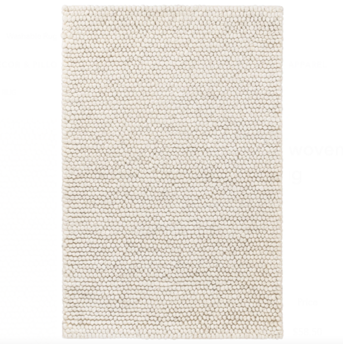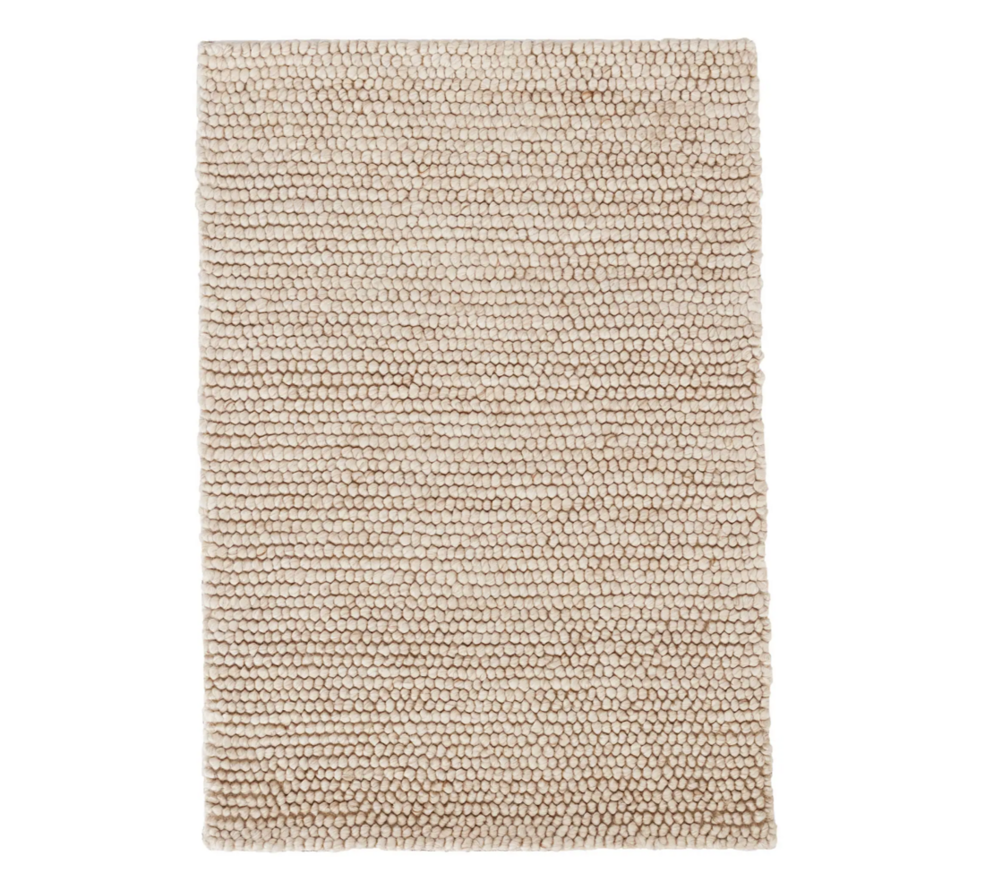 58% Wool, 42% Viscose, handwoven, medium pile, best suited for low-traffic, gently used rooms, soft underfoot, neutral & organic texture