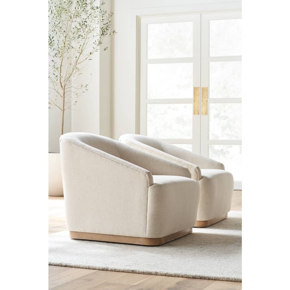 Upholstered Swivel Chair | Wood Base | Dimensions 33" x 35" x 29"