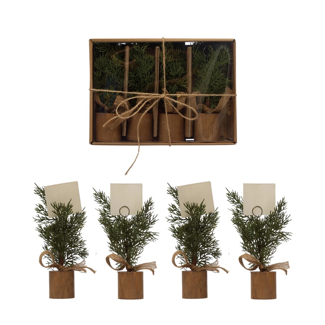 Faux Pine Tree Place Card Holders, Boxed Set of 4