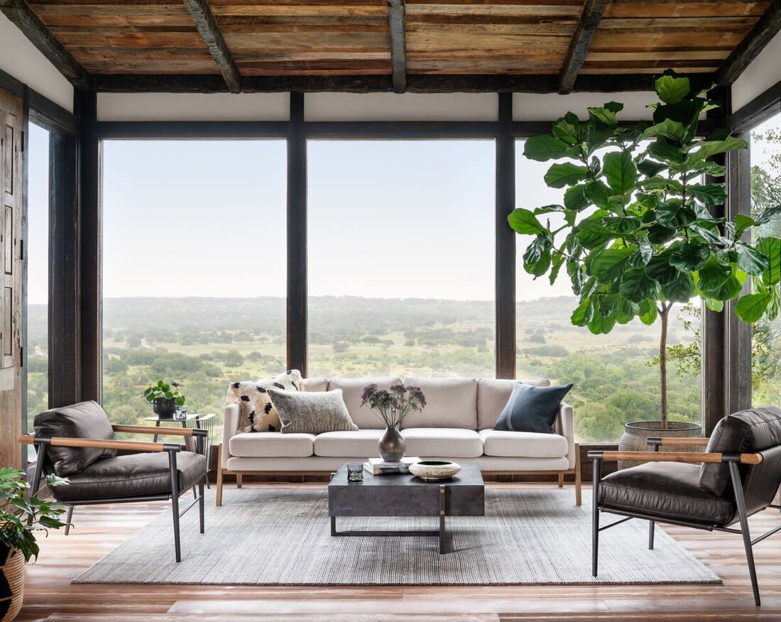 Performance-grade upholstery, with oak & carbon finished frame | 27.5" x 32" x 31"