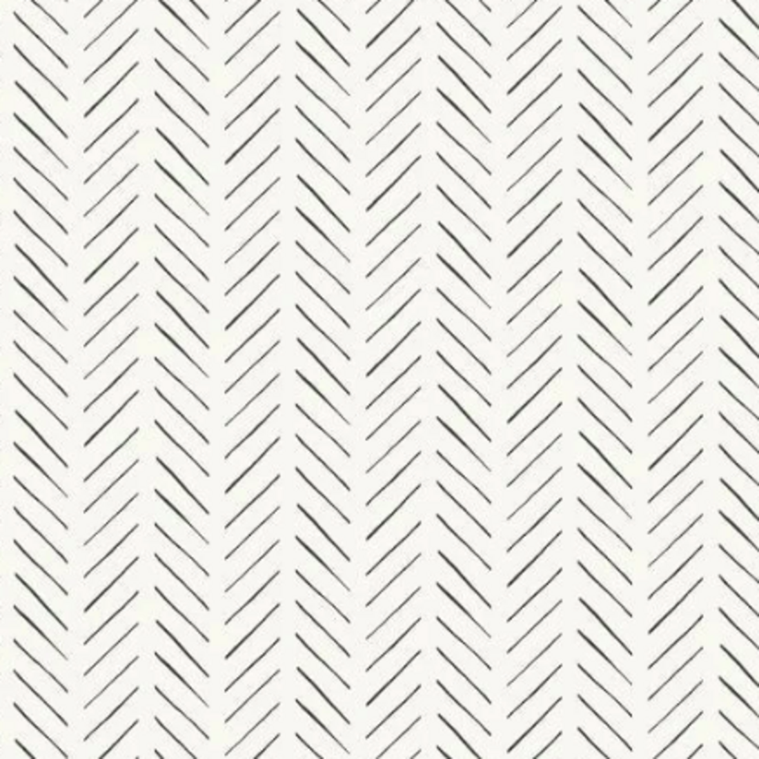 Black angled lines form a loose herringbone pattern to inspire playful movement on the wall. This classic neutral would look great in a dining room, powder bathroom, or home office.