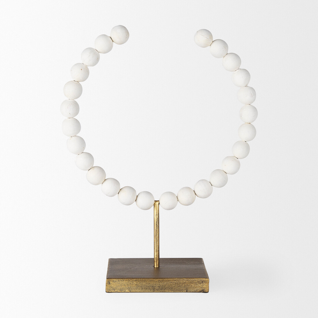 White Beaded Broken Sphere Decorative Object W/ Gold Base