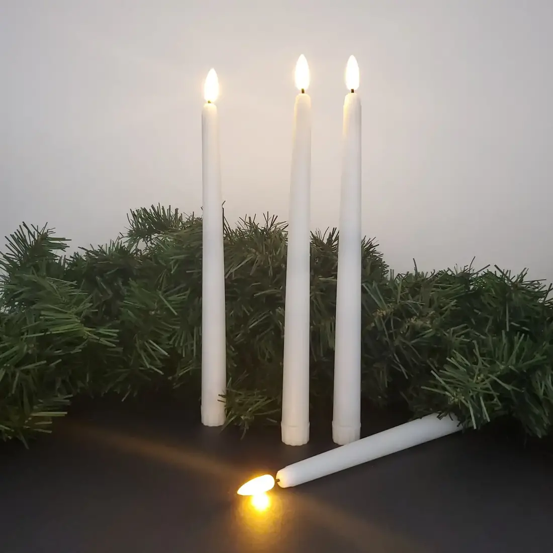 Set of 4 white flameless tapered candles | Remote included | 10" tall